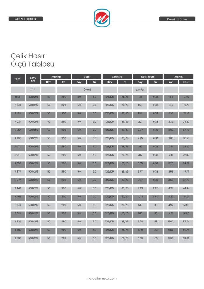 Paslanmaz Çelik Lama Ağırlık Tablosu