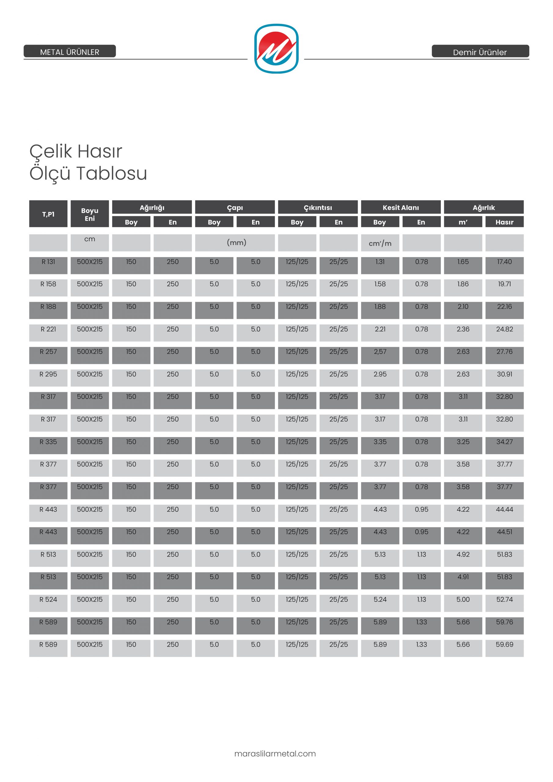 Paslanmaz Çelik Profil Ağırlık Tablosu