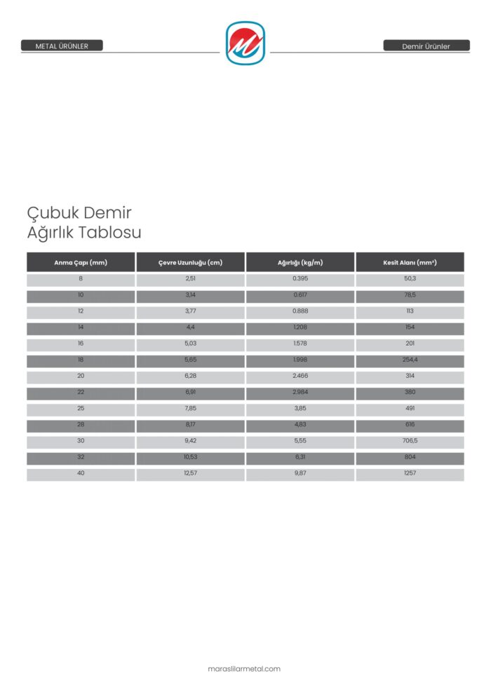 Paslanmaz Çelik Köşebent Ağırlık Tablosu